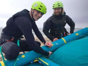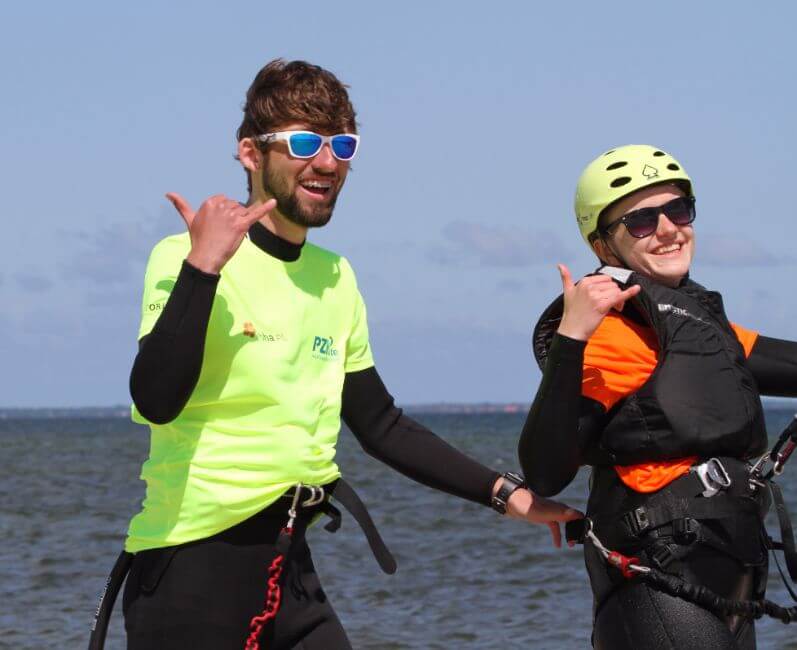 Cena szkolenia zawiera wypożyczenie sprzętu: trapezu, kamizelki asekuracyjnej, kasku z systemem radiowym, latawca i deski oraz asekurację motorówki.